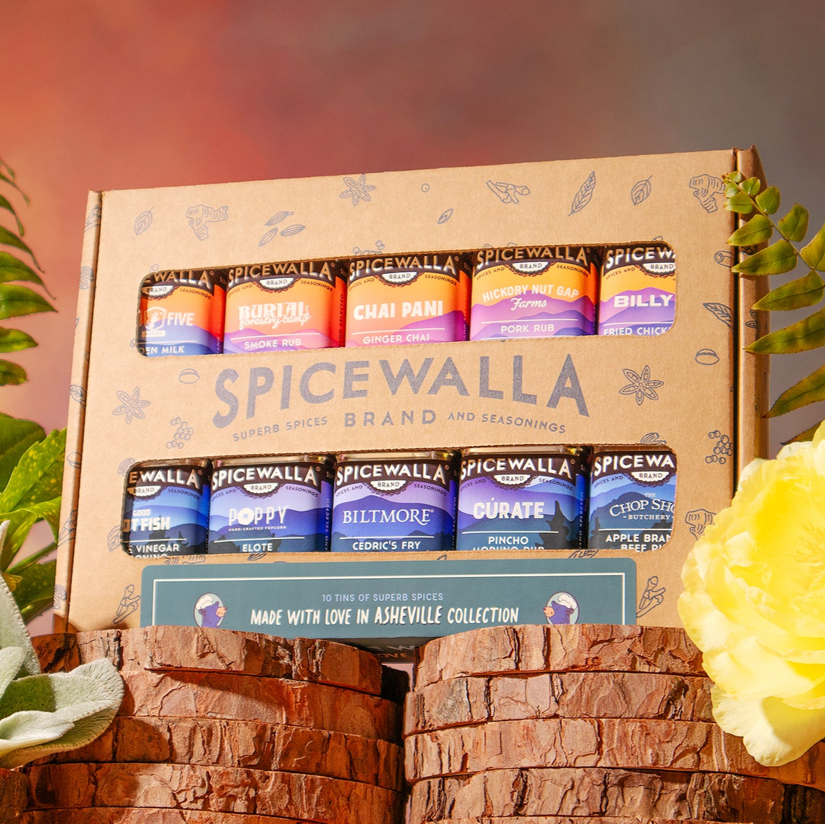 This limited-edition set — a celebration of Asheville’s resilient food community — includes 10 exclusive spice blends and a cookbooklet of recipes made in collaboration with the city’s most beloved makers, chefs, and institutions. A portion of sales goes directly to supporting MANNA FoodBank, Homeward Bound, and Blue Ridge Public Radio as they continue to support WNC after Hurricane Helene.