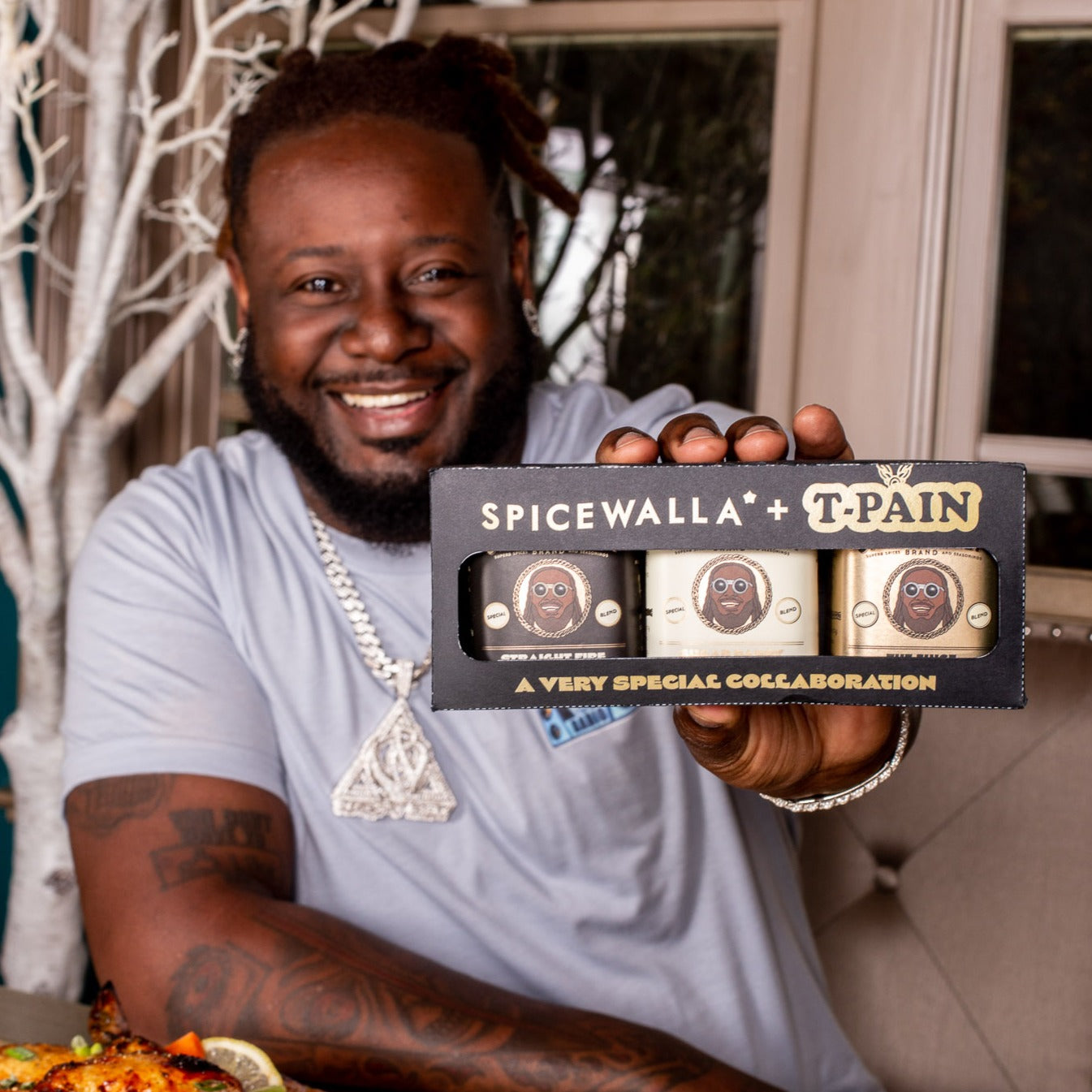 A flavour chart‑topper co‑created with Grammy Award–winning artist T‑Pain: meet The Sauce, a slow‑burn hot sauce made from Asheville‑grown jalapeños, Vidalia onion, smoked paprika, and garlic — plus a 3‑pack of custom wing‑rub blends designed by T‑Pain and Chef Meherwan Irani. Bold, playful, and all‑around fire — this exclusive collection is built for flavour — and only from Spicewalla.