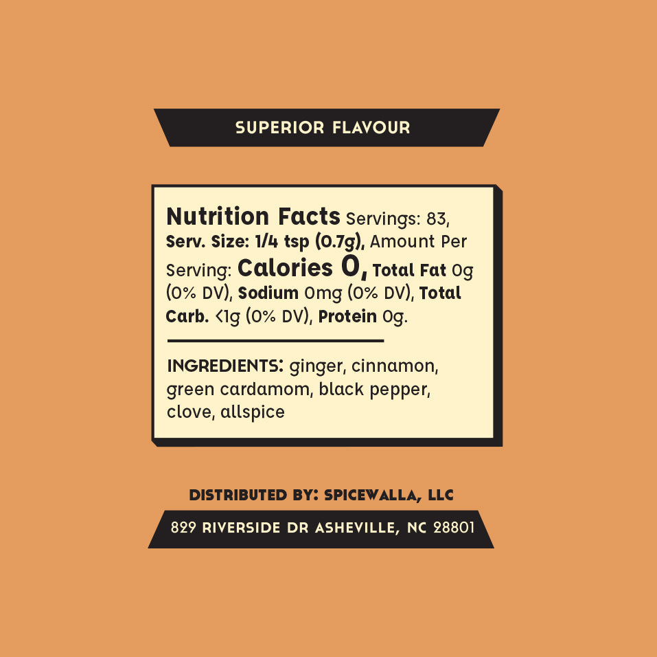 Unlike your normal drive-thru chai, this blend is inspired by Indian street flavors: heavier on the ginger and cardamom, and lighter on the cinnamon. Use this spice mix to brew a premium cup of Chai, in desserts, baking, oatmeal, or homemade ice cream.