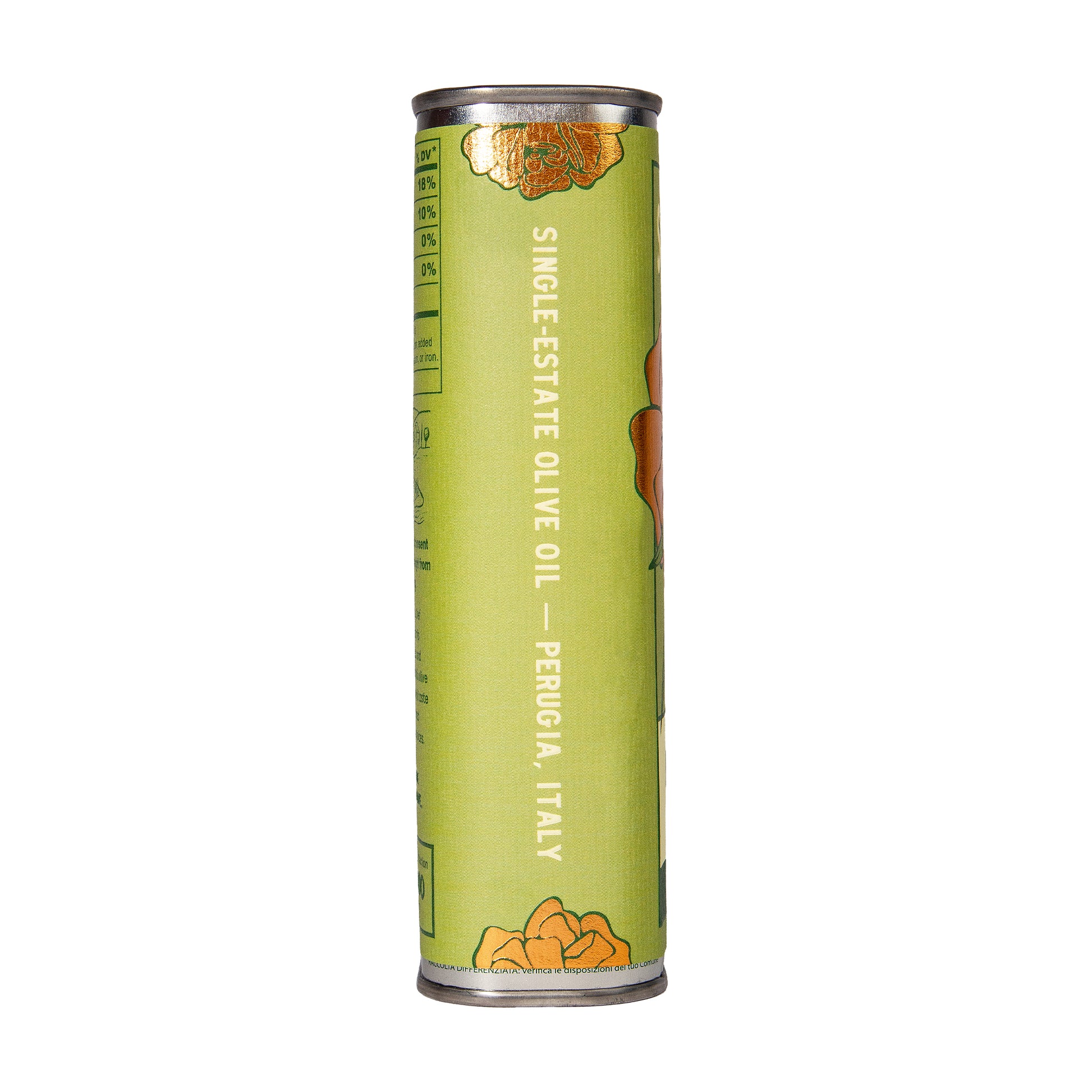 100% Extra Virgin Olive Oil (Moraiolo, Leccino, Frantoio, Pendolino, and Ascolana Tenera varietals)